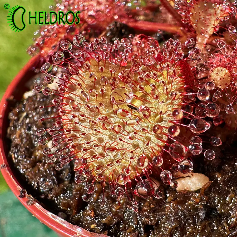 Drosera ANDROMEDA - a hybrid, cross between Drosera Prolifera and Drosera Schizandra. Requires higher humidity. It can produce very large sticky drops that attract insects.