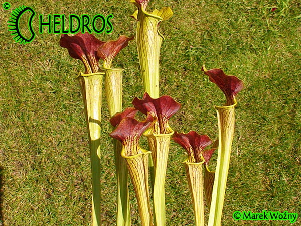 MK H17 Sarracenia alata Red Lid x flava. Striking red inner lids.